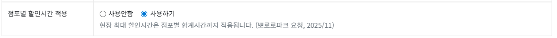 점포별 할인시간 적용에서 사용하기를 선택 합니다.