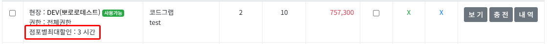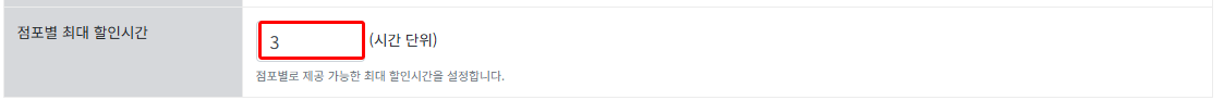 보기 > 수정 화면 아래 부분에 점포별 최대 할인 시간을 입력하면 적용이 됩니다.