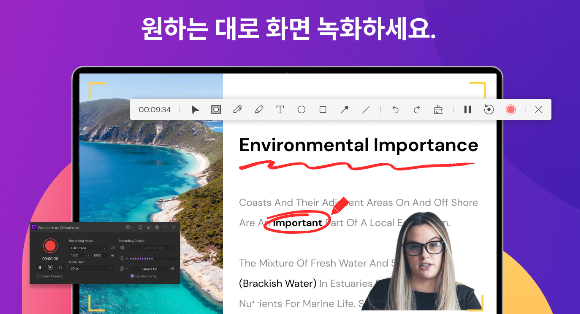 아래 그림과 같이 설치 후 녹화 영역을 지정하고