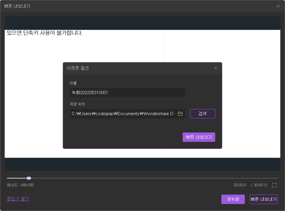 다운로드 및 설치 : https://dc.wondershare.kr/guide-windows/download-register-uninstall.html